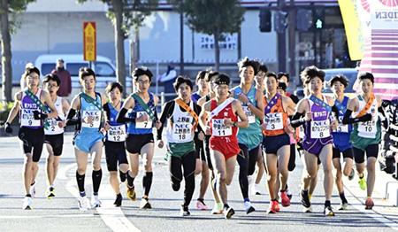 第62回県一周駅伝6日スタート 17チーム甲斐路を力走 20区間計168.8キロ たすきつなぐ